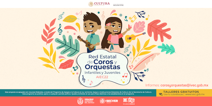 Xalapa, Ver., 29 de septiembre de 2022.- El Instituto Veracruzano de la Cultura, en colaboración con la Secretaría de Cultura a través del programa de Apoyo a Instituciones Estatales de Cultura (AIEC), dará inicio el 04 de octubre al nuevo periodo de actividades de los 17 talleres de la Red Estatal de Coros Infantiles y Juveniles, presentes en diferentes sedes del estado de Veracruz.