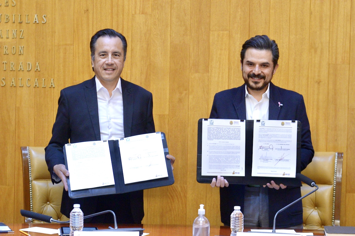 Ciudad de México, 12 de octubre de 2022.- A fin de simplificar las actividades de vigilancia y cumplimiento de las obligaciones fiscales de los contribuyentes, el gobernador Cuitláhuac García Jiménez y el titular del Instituto Mexicano del Seguro Social (IMSS), Zoé Robledo Aburto, signaron un convenio de colaboración para el intercambio de información fiscal y administrativa.