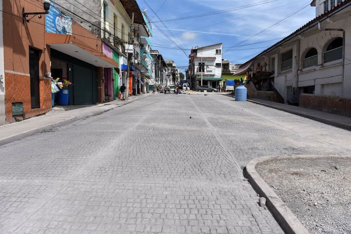 Xalapa, Ver., 17 de octubre de 2022.- Como parte de los trabajos de rehabilitación integral que se realizan en la intersección de las calles Rojano, Nogueira y Xalapeños Ilustres, este lunes se llevan a cabo trabajos de colado y pavimentación con concreto estampado.
