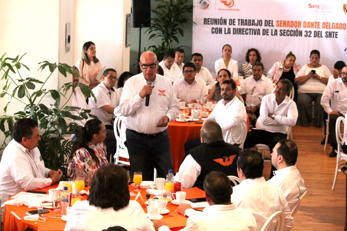 Xalapa, Ver., 19 de octubre de 2022.- Dante Delgado Rannauro, Senador de la República, y Coordinador Nacional de Movimiento Ciudadano, sostuvo una reunión con maestros y maestras de la sección 32 del SNTE en Veracruz, en donde aseveró que con la fuerza magisterial se le dará una sacudida al país, ya que afirmó que los trabajadores de la educación tienen verdadera vinculación de poder público en todas las regiones.
