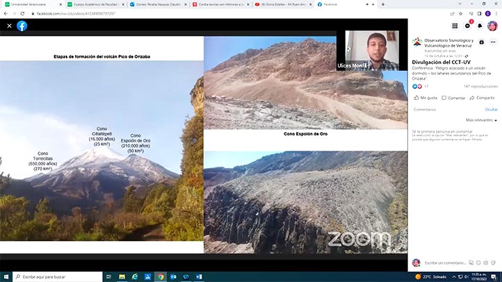 El objetivo de la plática transmitida por Zoom, fue dar a conocer los resultados de algunos estudios realizados al volcán Pico de Orizaba, durante la Licenciatura en Geografía y la Maestría en Gestión de Riesgos y Cambio Climático.