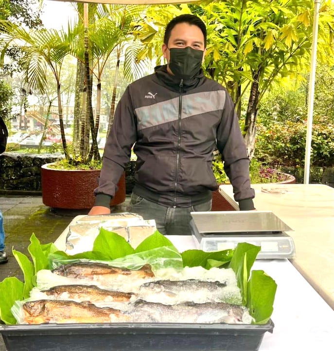 Esta iniciativa logró vender 147 kilogramos de trucha viva, 108 eviscerada, 22 kg ahumada, 10 en filete, 15 kg para coctel y 145 piezas de trucha preparada. A la par, se ofrecieron nuez de macadamia, café y carne para hamburguesas, lo que en un solo día representó para ocho productores un ingreso de 64 mil pesos.