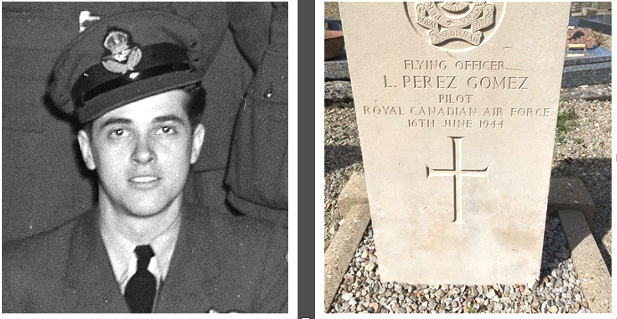 Después de la guerra los canadienses lo identificaron y en su tumba se colocó una lápida con la inscripción: Flying Officer L. Perez-Gomez. Pilot. Royal Canadian Air Force. 16th June 1944.