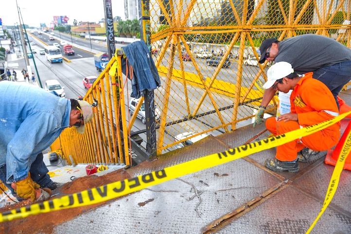 Xalapa, Ver., 07 de noviembre de 2022.- Como parte del programa permanente de Imagen Urbana, personal municipal trabaja en el mantenimiento de los puentes peatonales Centenario y Plaza Crystal, en el bulevar Lázaro Cárdenas, a fin de que este equipamiento urbano se encuentre en las mejores condiciones posibles para brindar un cruce seguro a las y los peatones.