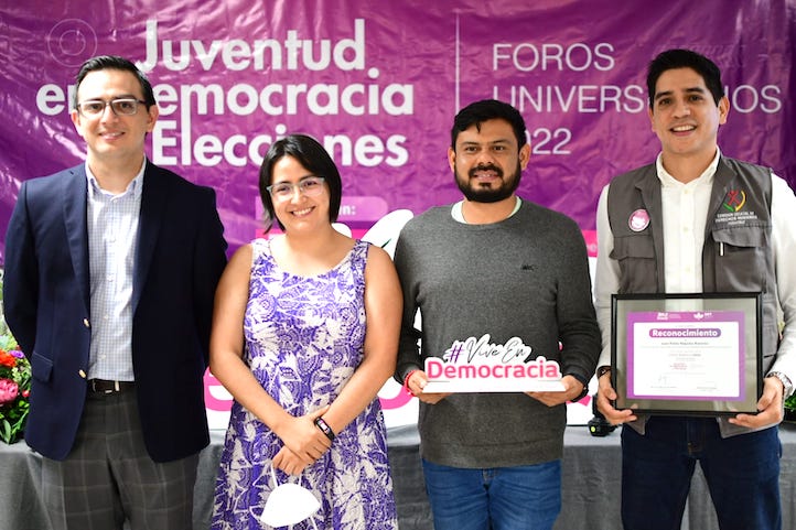 Para concluir le fue entregada la insignia «Vive en Democracia» al ITS de San Andrés Tuxtla, por su compromiso con la juventud en espacios públicos y su invaluable colaboración como sede del cuarto Foro Universitario 2022 “Juventud en Democracia y Elecciones”.