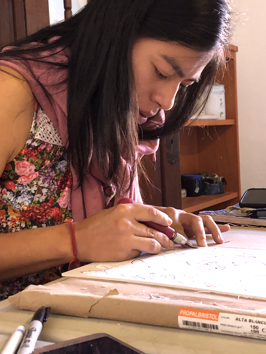 Después se hablará sobre el claroscuro y el alto contraste; el dibujo directo, la calca y la transferencia para poder llegar al boceto de su proyecto final, que se hará con la técnica conocida como camafeo: estampación xilográfica de varias planchas de un mismo color.