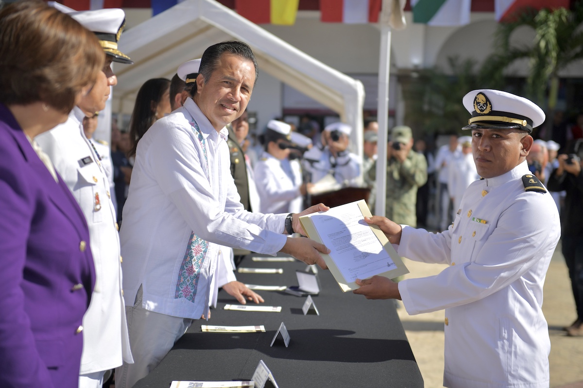 El comandante de la Tercera Región Naval, Almirante Raúl Pérez Vásquez, subrayó la gran aprobación que tiene la institución ante la sociedad y reiteró la disposición de construir la paz y la seguridad que merece la sociedad. “La SEMAR está presente para coadyuvar y trabajar con usted, Gobernador, en pro de las mejores causas”.