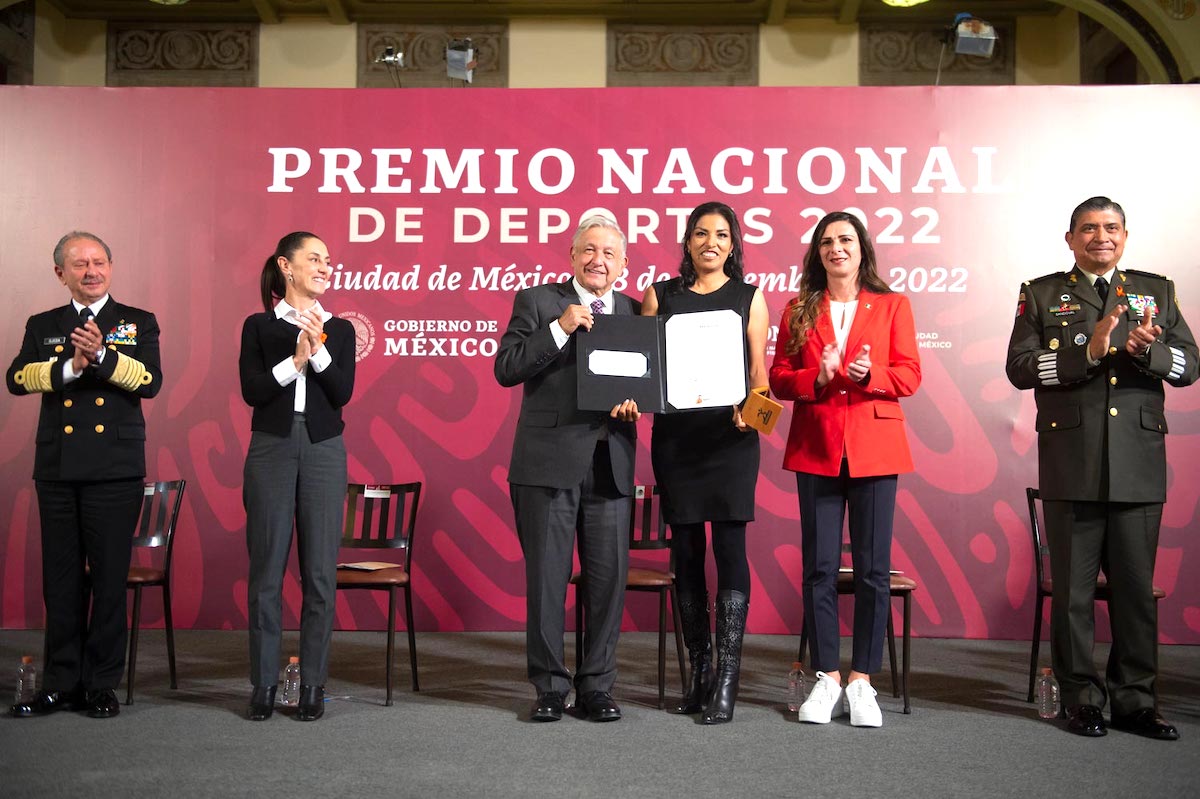 En el recinto, el presidente López Obrador hizo entrega de diplomas y reconocimientos a las y los ganadores del Premio Nacional de Deportes 2022.