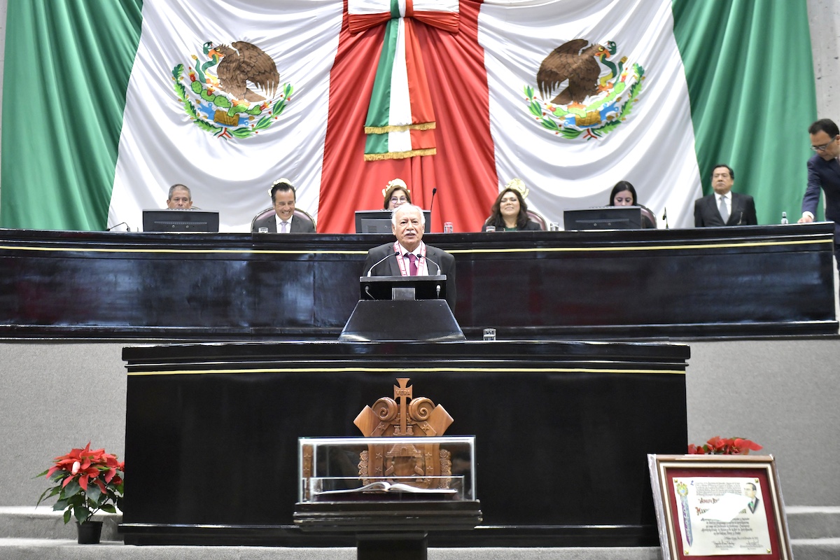 En sesión solemne de la LXVI Legislatura, agradeció al galardonado su contribución “a una de las actividades que permiten que comamos todos, con una visión de desarrollo rural”, celebrando que mediante su labor haga referencia a la discusión de la reforma a Ley General de Salud en el Senado, porque hasta allá tiene que llegar el mensaje; en este caso, gracias a hombres y mujeres que han entregado su conocimiento y dedicado gran parte de su vida al bienestar común.