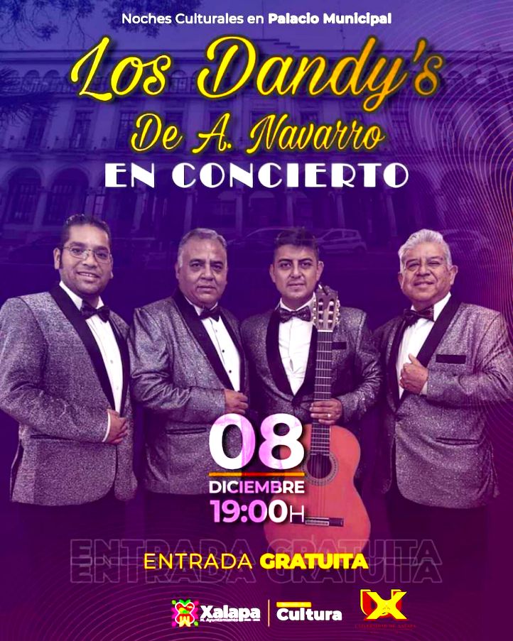 El jueves 8 de diciembre seguirán las Tardes de Xallitic a las 17:00 horas; mientras que a las 18:00 horas, en el Museo de la Música Veracruzana, la clarinetista Raquel Contreras ofrecerá una charla como parte de los “Nuevos talentos veracruzanos”; y a las 19:00 horas, Los Dandy’s ofrecerán un concierto acompañados por el trío Coatepec.