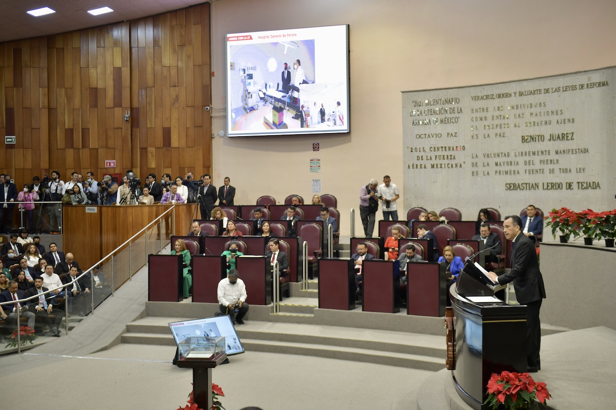 Xalapa, Ver., 14 de diciembre de 2022.- Para cerrar la Glosa del IV Informe, el gobernador Cuitláhuac García Jiménez celebró que, pese a las adversidades, Veracruz logró salir adelante imponiendo récord de obras; en el Pleno de la LXVI Legislatura estatal, agradeció el respaldo del presidente Andrés Manuel López Obrador.
