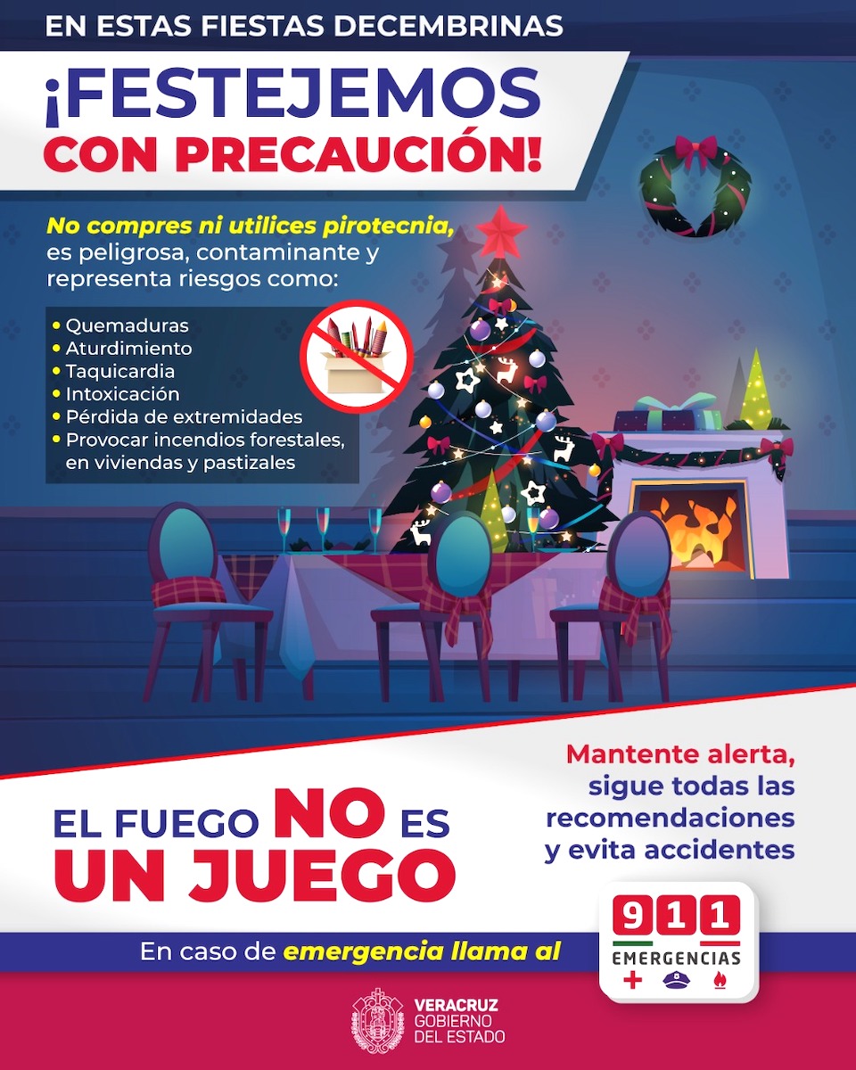 El Ejecutivo instruyó a las fuerzas de tareas y dependencias reforzar las recomendaciones básicas por el uso de pirotecnia, veladoras, árboles de navidad y el riesgo de incendios en los hogares, así como intensificar los operativos con motivo del período Guadalupe–Reyes, del 16 de diciembre al 06 de enero.