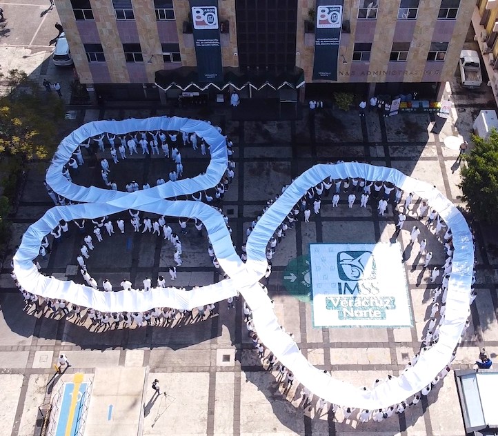 Xalapa, Ver., 24 de enero de 2023.- La representación del Instituto Mexicano del Seguro Social (IMSS) en Veracruz Norte llevó a cabo una macro activación física y realizó un número 80 gigante, conformado por 450 trabajadores integrantes de las jefaturas y coordinaciones durante la celebración del 80 Aniversario del IMSS, informó su titular, doctor Jorge Martínez Torres.
