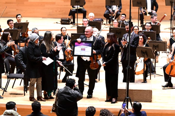 Como parte de las actividades que realiza la Comisión Especial de Vinculación de Organizaciones de la Sociedad Civil del OPLE Veracruz, durante el desarrollo del Concierto, se entregó dicho reconocimiento al Maestro Mikhail Medvid, Primer concertino de la OSX en presencia de la Abogada General de la Universidad Veracruzana, Dra. Marisol Luna Leal.