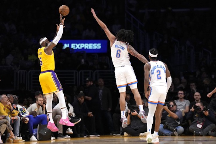 Los Angeles, California, 07 de febrero de 2023.- La estrella de los Lakers salió inspirado ante Oklahoma Thunder y apenas en el tercer cuarto logró superar la marca histórica de anotaciones.