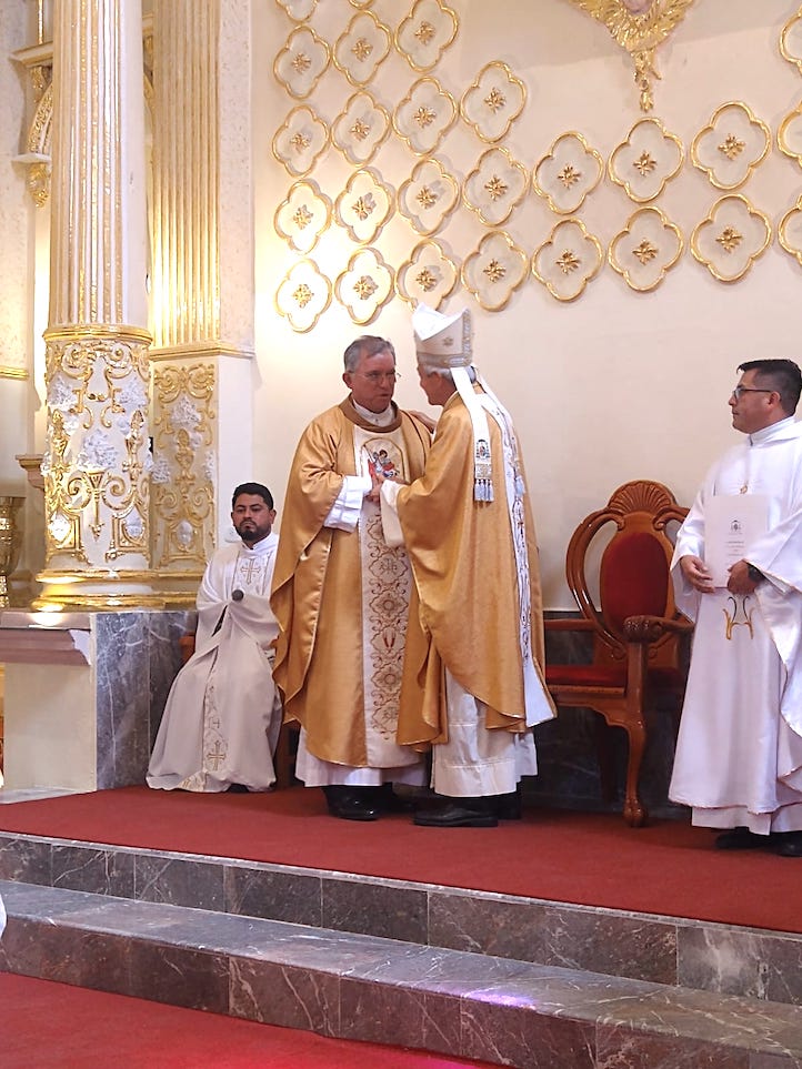Perote, Ver., 16 de febrero de 2023.- El Arzobispo Jorge Carlos Patrón Wong presidió la eucaristía donde el presbítero José Manuel Suazo Reyes recibió el nombramiento de nuevo párroco de San Miguel Arcángel, en un ambiente cálido y afectuoso de los feligreses que acudieron al templo católico de este municipio.