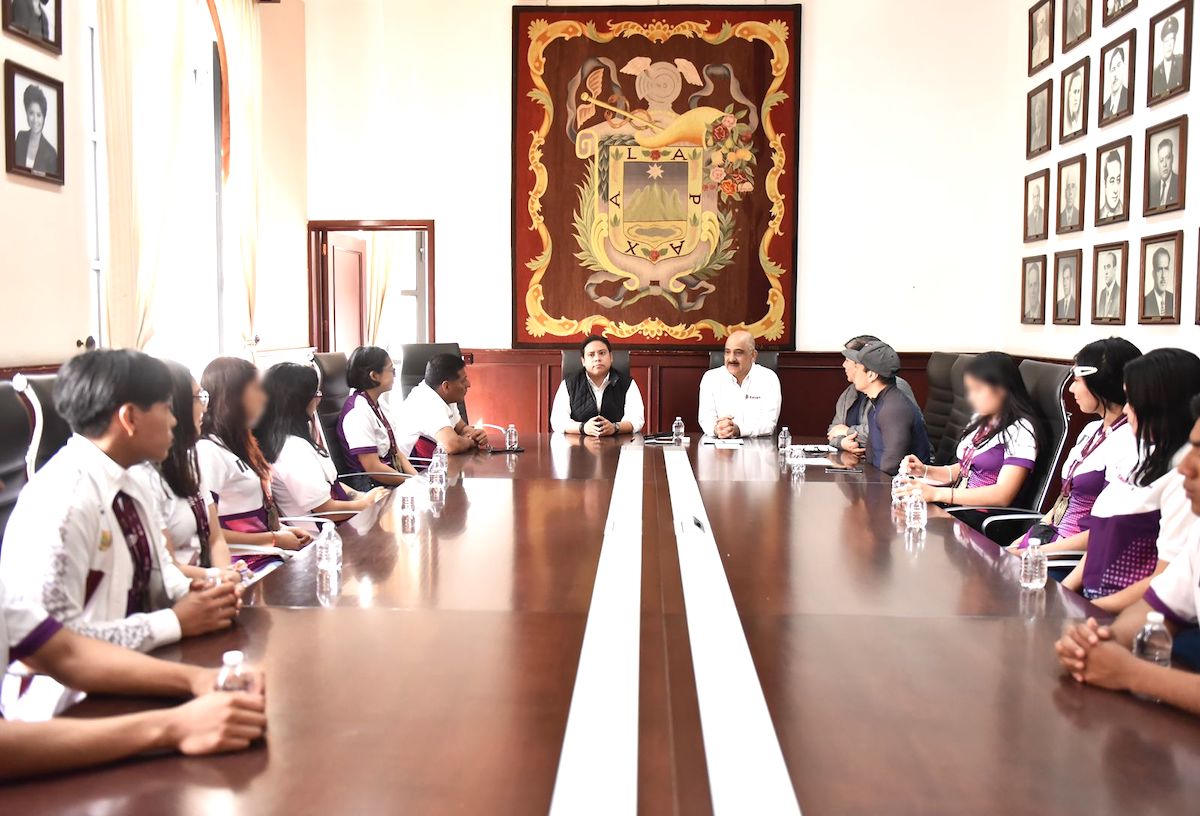 Xalapa, Ver., 23 de febrero de 2023.- El presidente municipal Ricardo Ahued Bardahuil recibió a jóvenes pertenecientes a la escuela municipal de halterofilia, quienes lograron 36 medallas de oro, 14 de plata y 9 de bronce en los pasados Juegos Estatales Conade.