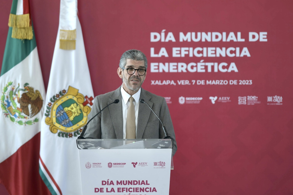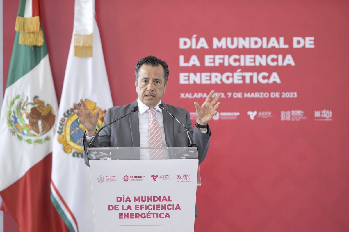 Xalapa, Ver., 07 de marzo de 2023.- Para el Gobierno de México es importante la participación privada en materia de energía, pero el rector de la producción debe ser el Estado, manifestó el gobernador Cuitláhuac García Jiménez en el marco del Día Mundial de la Eficiencia Energética, donde se pronunció por erradicar las mentiras y sobre todo el negocio de las empresas.