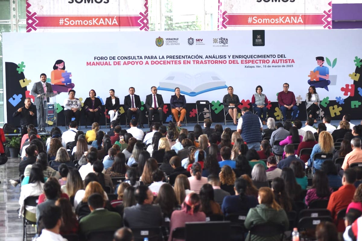 Xalapa, Ver., 15 de marzo de 2023.- Para la actualización del Manual de Apoyo a Docentes en Trastorno del Espectro Autista (TEA), la Secretaría de Educación de Veracruz realizó el Foro de Consulta con su presentación, análisis y enriquecimiento hacia la reflexión y los cambios en los servicios educativos, bajo la perspectiva de la inclusión y la justicia social contemplados en la Nueva Escuela Mexicana.