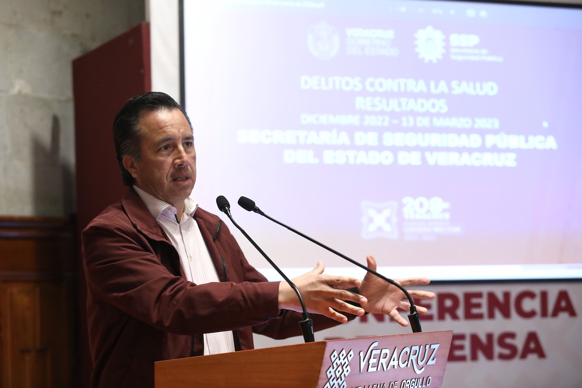 Xalapa, Ver., 20 de marzo de 2023.- De diciembre de 2022 al 13 de marzo, la Coordinación Estatal para la Construcción de la Paz decomisó 81 mil 955 dosis de drogas tradicionales y sintéticas, lo que representa una suma de 16 millones 033 mil 380 pesos, destacó el gobernador Cuitláhuac García Jiménez en conferencia de prensa.