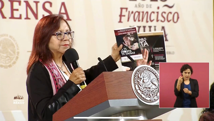 Explicó que la campaña de prevención contra las adicciones busca informar, atender e inhibir el consumo de drogas en las comunidades escolares de secundaria y nivel Medio Superior, con dos componentes clave: acciones en el aula y una campaña de difusión.