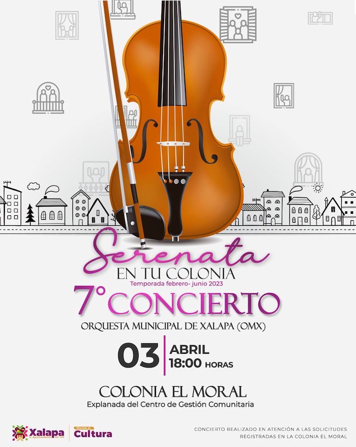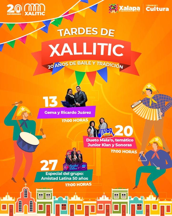 El jueves 13 de abril a las 17:00 horas, Gema y Ricardo Juárez se presentarán en la explanada de Xallitic, y este día y el viernes 14 a las 19:00 horas, en el Auditorio de la IMAC, se festejará el 32 aniversario de la Orquesta Municipal de Xalapa con el concierto “De la Sonora al Danzón Sinfónico”.