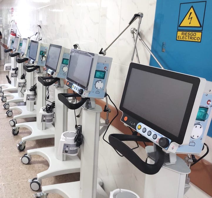 Asimismo, unidades radiológicas para estudios de tórax, cunas de calor radiante con fototerapia opcional, refrigeradores para vacunas, incubadoras para recién nacido, entre muchos otros.
