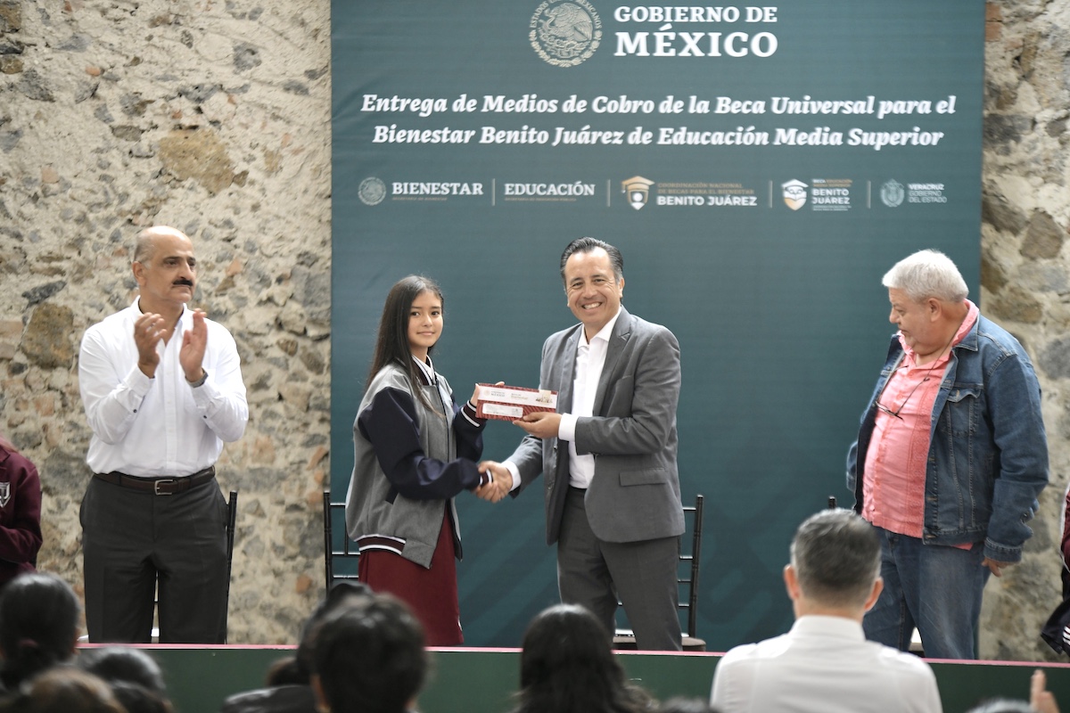 En Xalapa, 67 mil 877 estudiantes de nivel medio superior reciben tarjeta de la Beca Universal