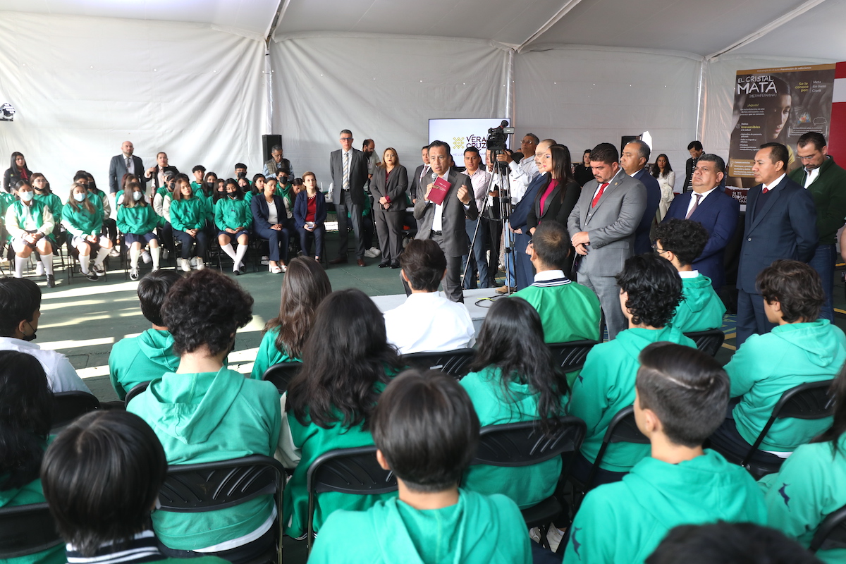 En su intervención, el secretario de Educación de Veracruz, Zenyazen Escobar García, aseguró que este esfuerzo impactará a más de 30 mil comunidades con la distribución de 177 mil guías y carteles en más de 5 mil escuelas secundarias y de nivel medio superior. “Nuestra esperanza es que las y los adolescentes reciban la información adecuada y el respaldo dentro y fuera de las aulas”.
