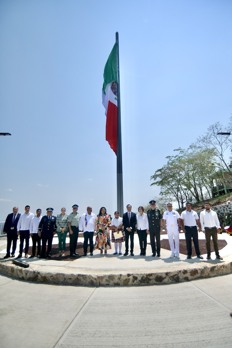 Alrededor del asta monumental, estuvieron también las titulares de los Poderes Legislativo y Judicial, diputada Margarita Corro Mendoza y magistrada Lisbeth Aurelia Jiménez Aguirre; integrantes de la Coordinación Estatal para la Construcción de la Paz; el alcalde de Emiliano Zapata, Erick Ruiz Hernández, así como estudiantes y docentes del Telebachillerato de Cerro Gordo.