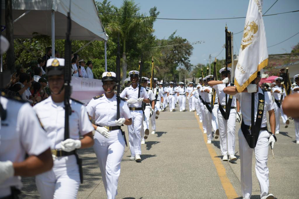 A continuación, en la avenida Niños Héroes se realizó el desfile cívico-militar con la participación de las secretarías de la Defensa Nacional, Marina y Seguridad Pública; abanderados de las asociaciones Franco-Mexicanas e integrantes del Tercer Regimiento de la Legión Extranjera Francesa.