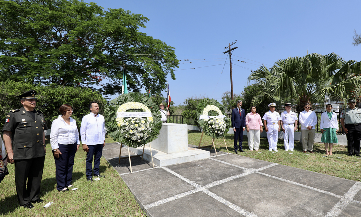 Alrededor de las 9:00 horas, el Ejecutivo, el Embajador, autoridades estatales, navales y militares dieron paso a las actividades conmemorativas con el depósito de ofrenda floral y guardia de honor ante el monumento del coronel Francisco de Paula Milán, en el Mausoleo Franco-Mexicano y en el monumento donde descansan los restos del doctor y coronel, Francisco Talavera.