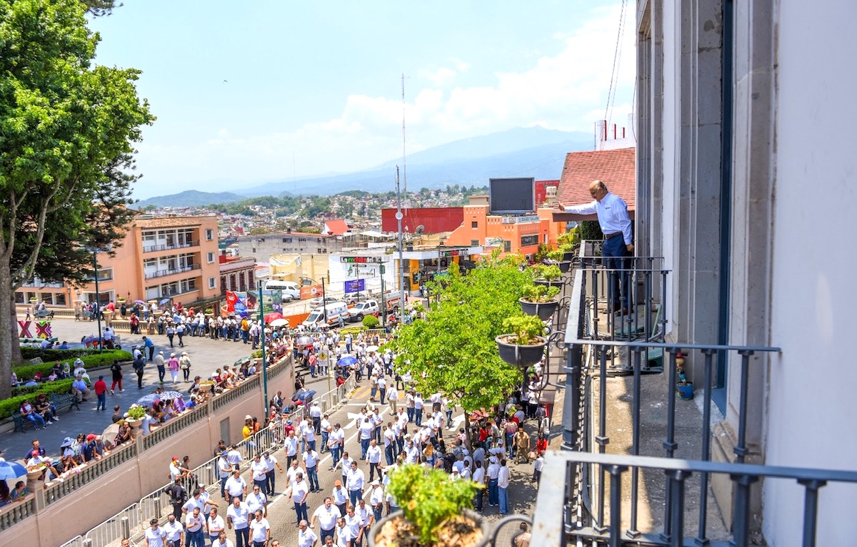 Jalapa, Ver., 1 de mayo de 2023.- Miles de trabajadores desfilaron este 1 de mayo en la capital del estado y aprovecharon aprovecharon el momento para presentar quejas frente al gobernador Cuitláhuac García exigiendo mejoras en las condiciones laborales, instalaciones seguras y de buena calidad, sueldos estables y prestaciones de ley.