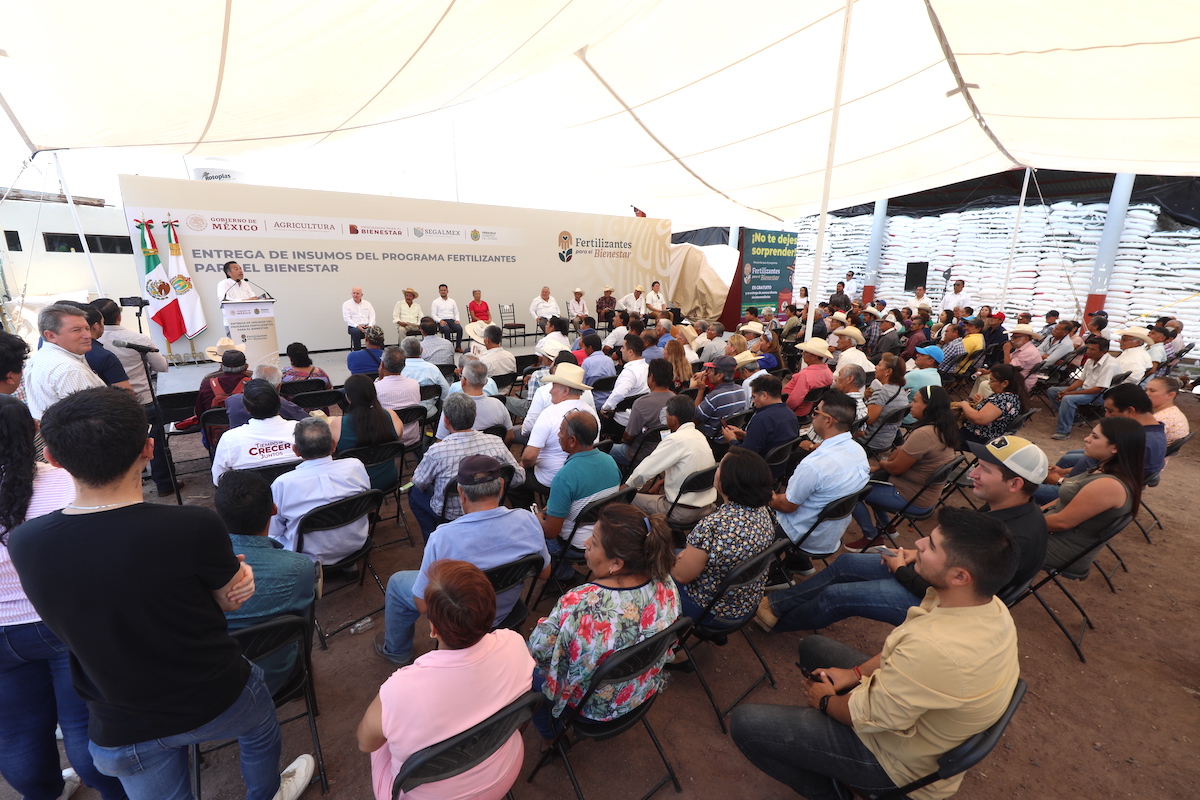 A su vez, el delegado de Programas para el Desarrollo, Manuel Huerta Ladrón de Guevara, celebró que mediante esta política se cumpla el principio de asegurar el alimento a quienes lo producen, pues 83 mil de los 165 mil inscritos en Producción para el Bienestar siembran maíz y frijol. Enfatizó que, si el fertilizante es bien aplicado, la cosecha puede triplicarse y el costo de estos granos disminuir.