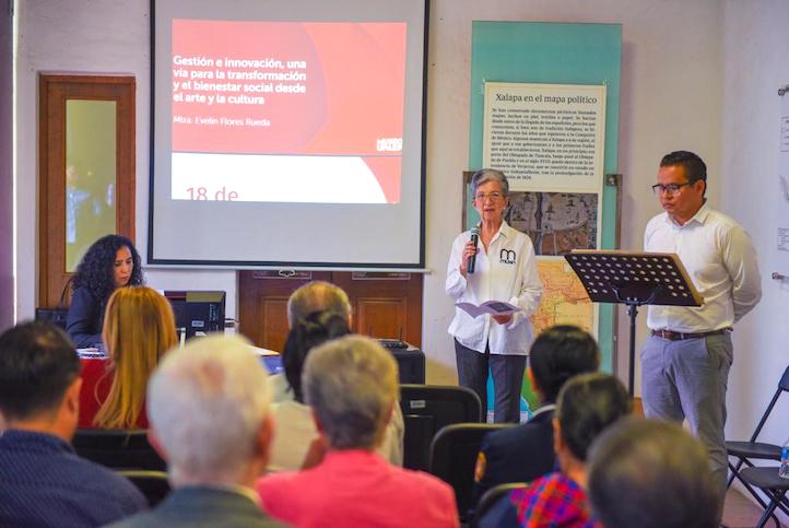 Xalapa, Ver., 18 de mayo de 2023.- En el marco del Día Internacional de los Museos, el Museo Casa Xalapa (MUXA) albergó las primeras actividades alrededor del “Encuentro de Museos», donde la maestra Evelin Flores Rueda presentó la charla “Gestión e innovación, una vía para la transformación y el bienestar social del arte y la cultura».