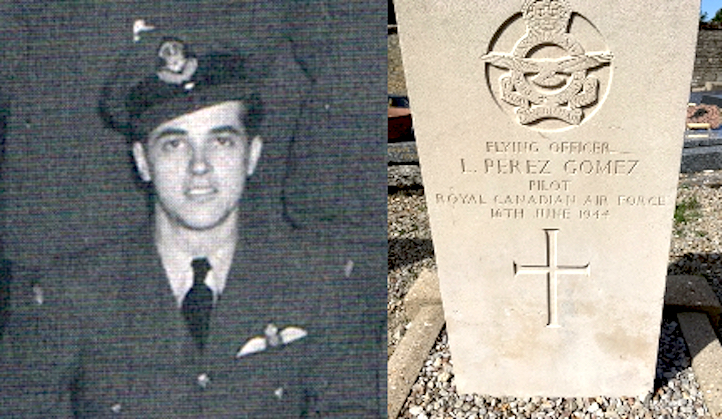 Después de la guerra los canadienses lo identificaron y en su tumba se colocó una lápida con la inscripción: Flying Officer L. Perez-Gomez. Pilot. Royal Canadian Air Force. 16th June 1944.