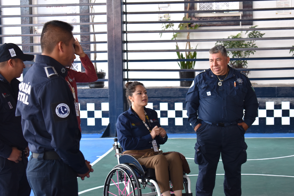 Mediante el Programa Construcción de una Cultura Incluyente, la dependencia refuerza y actualiza, entre los integrantes operativos, una actuación policial centrada en el trato no discriminatorio hacia las personas en situación de discapacidad.