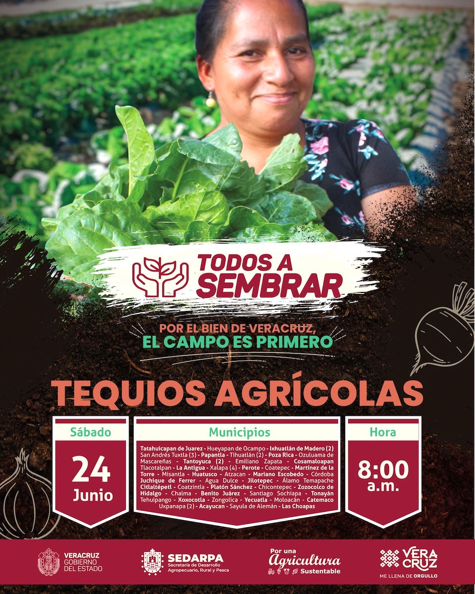 Xalapa, Ver., 22 de junio de 2023.- El próximo sábado, el Gobierno del Estado pondrá en marcha 54 tequios agrícolas en 49 municipios dentro de la campaña Todos a Sembrar, Por el bien de Veracruz, el campo es primero, en la cual convoca a productores y sociedad civil a cultivar utilizando prácticas amigables con el ambiente y contribuir a la soberanía alimentaria de las comunidades.