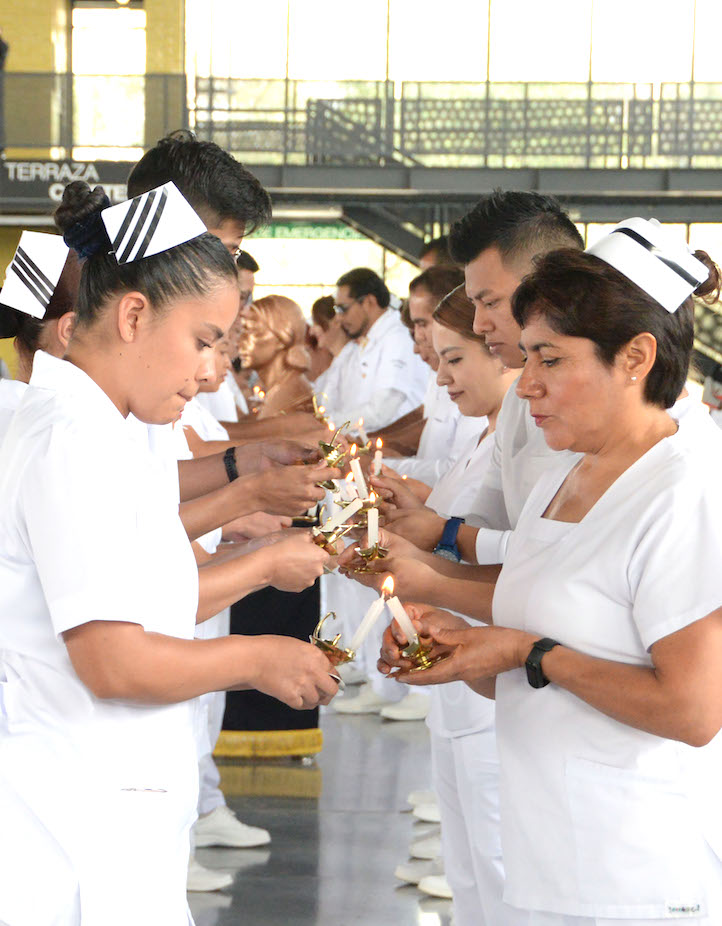 El “Paso de la Luz” se ha constituido como un acto académico tradicional, cuyo fin es materializar el sentido de identidad con la disciplina profesional de la enfermería, al momento en que cada egresado pasa al frente para encender su vela con el fuego que le proporcionan sus maestros y superiores.
