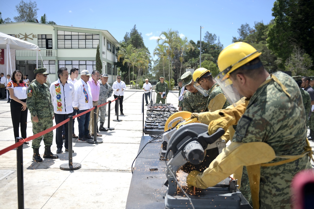 La supervisión del evento estuvo a cargo del comandante de la 26/a Zona Militar, general Rubén Zamudio Matías, quien precisó que por la destrucción realizada en marzo y esta ocasión suman 255 armas, 252 cargadores y 4 mil 763 cartuchos que han dejado de representar un riesgo a la población.