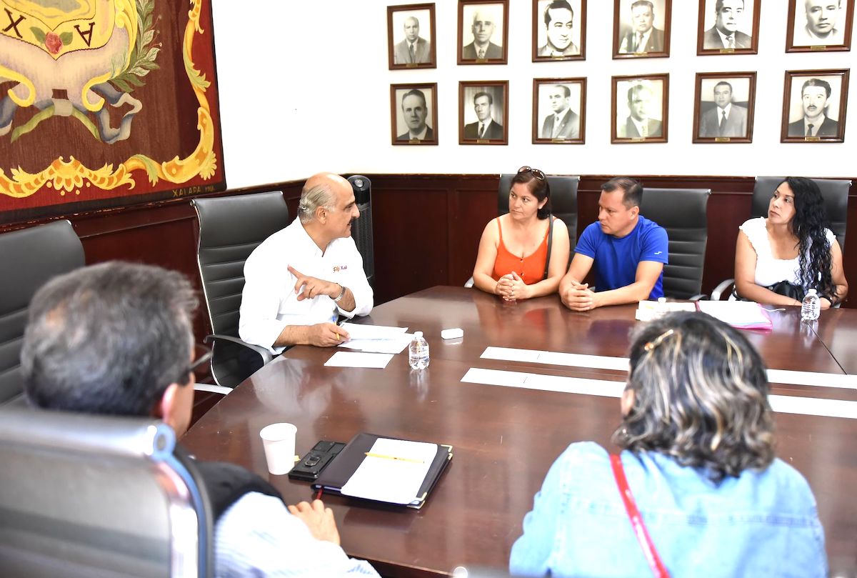 Xalapa, Ver., 13 de julio de 2023.- El alcalde Ricardo Ahued Bardahuil recibió en la Sala Ex Presidentes de Palacio Municipal a vecinas y vecinos de las colonias Casa Blanca y Sóstenes M. Blanco, quienes le solicitaron distintas obras de urbanización, como pavimentación y ampliación de la red de drenaje.