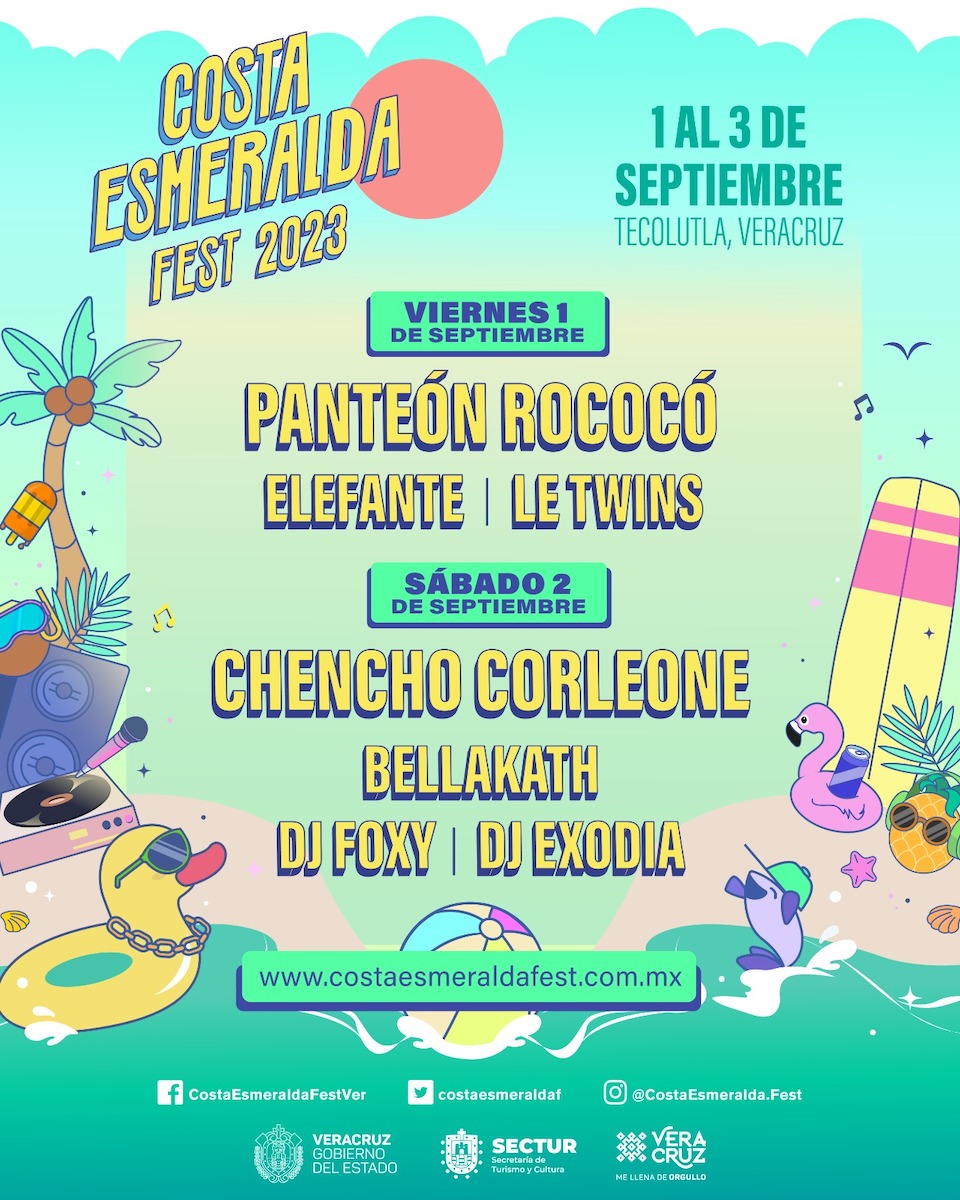 Xalapa, Ver., 03 de agosto de 2023.- El Costa Esmeralda Fest en Tecolutla está de vuelta del 01 al 03 de septiembre con más de 50 actividades entre deportivas, recreativas, culturales, acuáticas, artesanales, gastronómicas, educativas, de protección civil y naturaleza, además de conciertos con artistas locales, nacionales e internacionales.