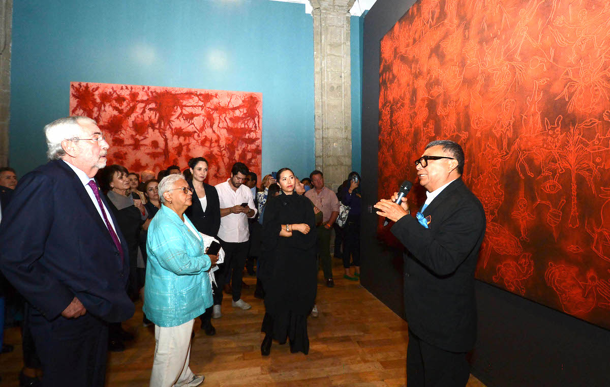 En la apertura de esta muestra, que reúne la más completa selección del pintor de origen mixteco y representante esencial de la llamada Escuela oaxaqueña, participaron también el coordinador Ejecutivo del Mandato del Antiguo Colegio de San Ildefonso, Eduardo Vázquez Martín; y el periodista, escritor y miembro de la Academia Mexicana de la Lengua, Jesús Silva-Herzog Márquez.