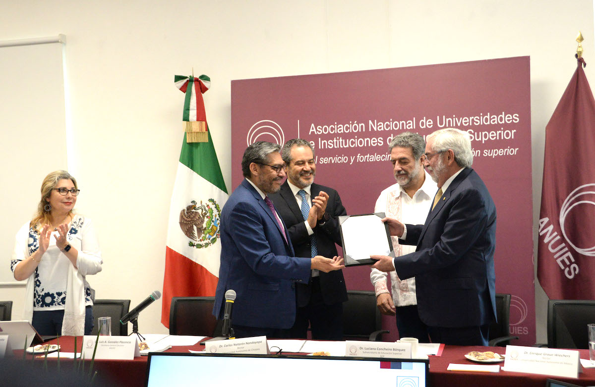 Al agradecer la distinción a los integrantes de la ANUIES, Graue Wiechers destacó que los últimos ocho años han sido muy interesantes. “Para mí ha sido una experiencia maravillosa haber compartido con la Asociación y con este Consejo Nacional, a lo largo de todo este tiempo”.
