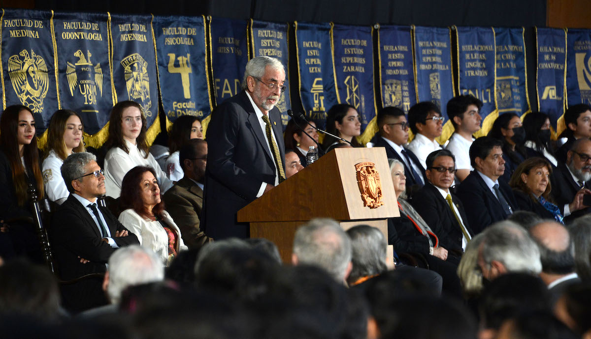 “Se incorporan a una universidad pública, laica y autónoma: la máxima casa de estudios de nuestro país y una de las 100 mejores del mundo”, reiteró el rector ante alumnas y alumnos de los diferentes planteles de bachillerato y licenciatura.