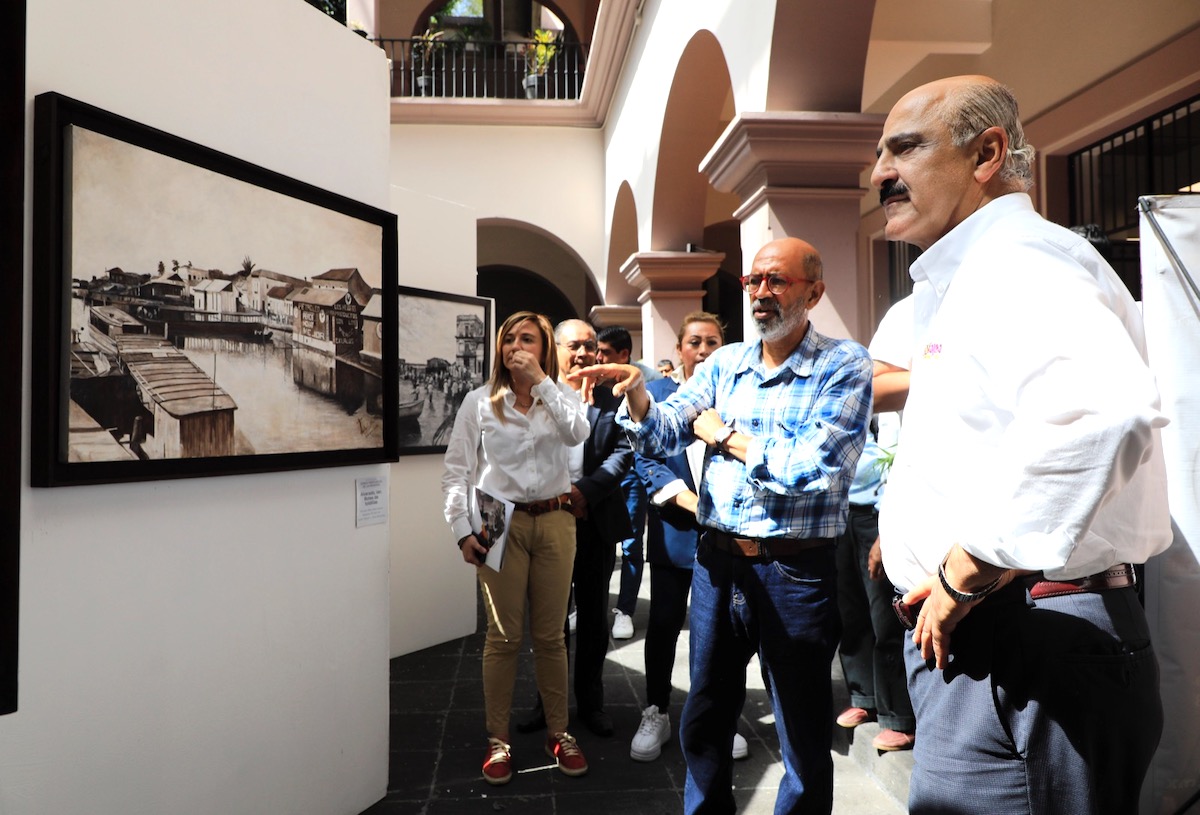 Xalapa, Ver., 04 de septiembre de 2023.- Como una obra esplendorosa que remonta al pasado y genera nostalgia sobre nuestra ciudad, describió el presidente municipal Ricardo Ahued Bardahuil las 20 piezas que conforman la exposición “Zonas profundas de la memoria”, de Héctor Luis Silva Martínez, inaugurada esta tarde en el patio central del Palacio Municipal.