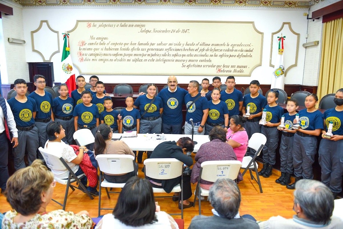 Xalapa, Ver., 04 de septiembre de 2023.- El presidente municipal Ricardo Ahued Bardahuil recibió y reconoció esta mañana en la Sala de Cabildo a representantes xalapeños del Pentathlón Deportivo Militarizado Universitario, quienes obtuvieron el tercer lugar durante la pasada Convención Nacional desarrollada en la ciudad de Pachuca de Soto, Hidalgo.