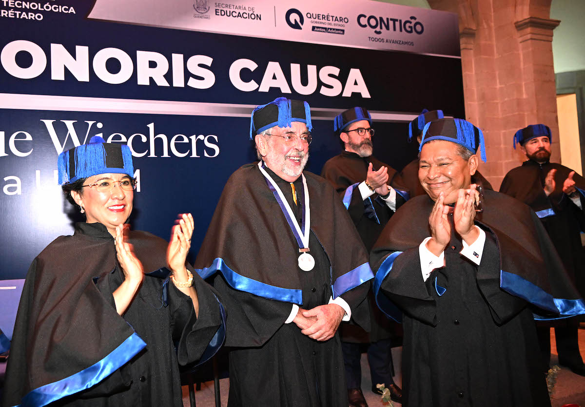 Ciudad de México, 08 de septiembre de 2023.- Por su reconocida trayectoria académica y profesional, sus aportaciones a nivel mundial y su contribución al fortalecimiento de la educación en México, y en especial en Querétaro, el rector de la UNAM, Enrique Graue Wiechers, fue investido hoy con el grado de doctor honoris causa por la Universidad Tecnológica de Querétaro (UTEQ).