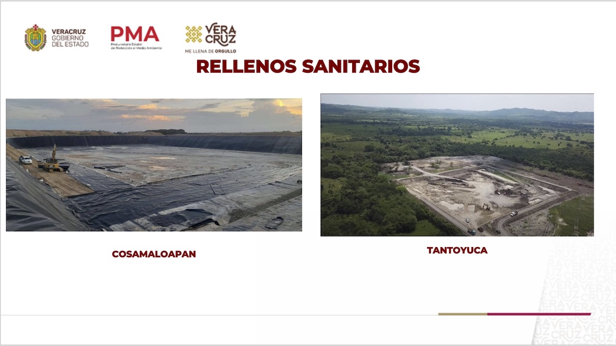 Subrayó que está por abrir el sitio de Cosamaloapan y, para dimensionar la importancia de las obras, explicó que la celda más pequeña mide una hectárea, llegando a cuatro, con una altura mínima de 15 y hasta 40 metros los montones de residuos confinados.