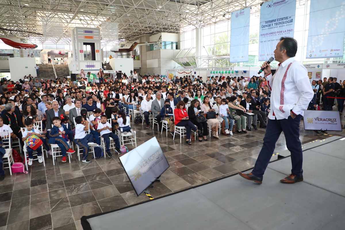 En su intervención, el director general del Consejo Veracruzano de Investigación Científica y Desarrollo Tecnológico, Darwin Mayorga Cruz, reafirmó el compromiso del Gobierno por fomentar, impulsar y promover la ciencia y la tecnología, a fin de despertar las vocaciones científicas desde edades tempranas y con ello el pensamiento crítico y liberador que requiere la sociedad.